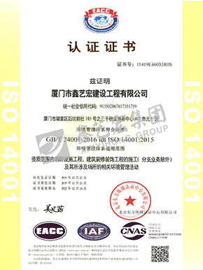 環(huán)境管理體系認證證書