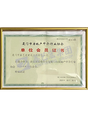 廈門市房地產(chǎn)中介行業(yè)協(xié)會單位會員證書
