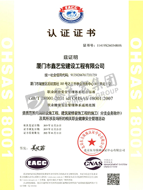 職業(yè)健康安全管理體系認證證書